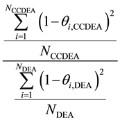 To compare between technical efficiency estimated from CCDEA model and technical efficiency estimated from DEA model, we use two Banker’s asymptotic DEA efficiency tests.
