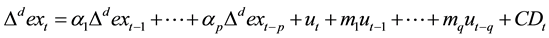 in which p is the autoregressive order, q is the moving average order, and d is the degree of difference.