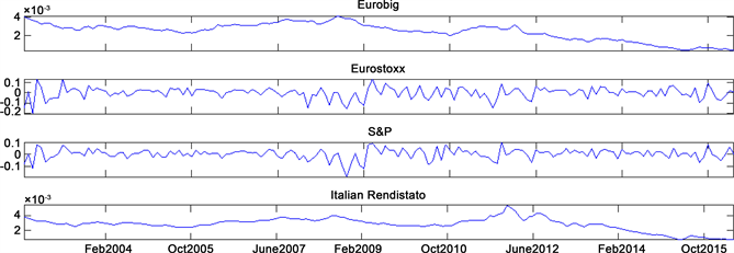 We indicate by the Eurobig index, by the Eurostoxx50 index, by the S & P index and by the Italian Rendistato (Figure 1).