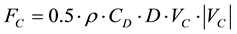 According to the modified version of the Morison’s equation, hydrodynamic forces are composed of a nonlinear drag component and an inertia force component: