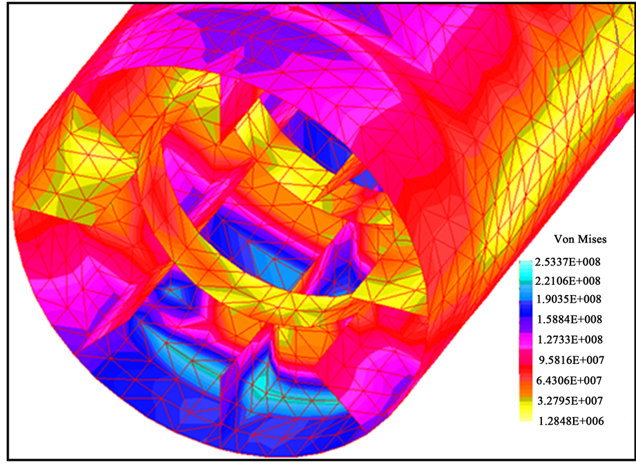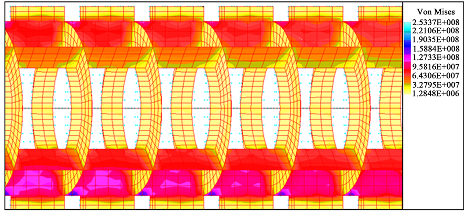 Figure 9. Leg structure, without shell: the map of the equivalent stresses.