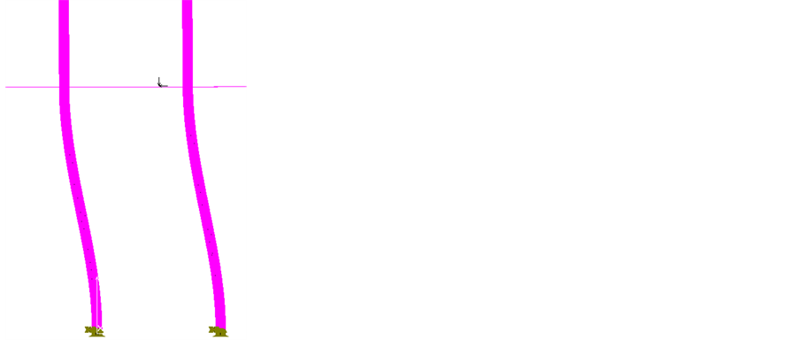 In Figure 10 the deformed shape of the simplified model of the jack up unit (platform on legs) is illustrated.
