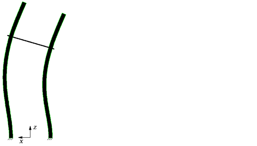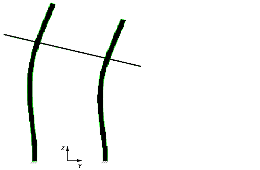 Figure 13. First global bending mode in plane XZ (f = 5.001 Hz).