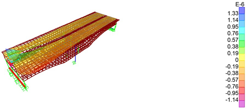Figure 8. Deformed shape of the bridge under the action of loading.