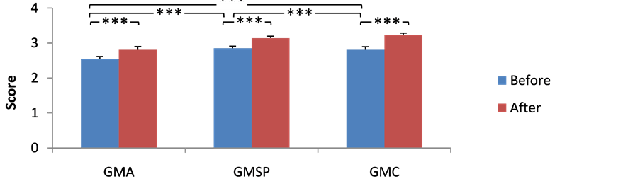 Figure 2 shows that the comparison of progress is very significantly different in performance between the three groups. Thus the order relation is: combined > analytical method method > method with situation problem.