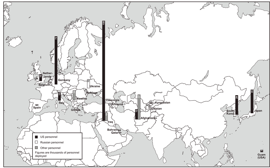 Figure 3. Russian, US, and other troops based in Eurasia, 2006-2007 (Source: Lachowski, 2007: pp. vi-vii ).