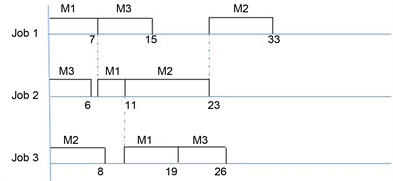 Furthermore, the new method can schedule both job shop and flow shop problems. In flow shop problems, all jobs should be operated in all machines in the same order. However, job shop scheduling is more general, and the sequence of machines in each job may not follow a specific order [11] . So, unlike algorithms like Johnson and NEH, which are only applicable and useful in flow shop problems, the proposed algorithm is capable of handling the job shop schedule as well. The new algorithm detail is described in the following section.