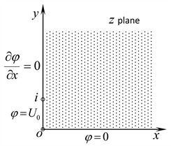 Figure 8 shows the boundary condition of an infinite long strip domain. Now let us solve the electric potential distribution in an infinite long strip domain. This boundary value problem can be written as