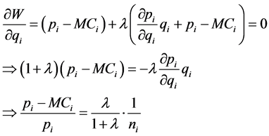 Mathematical model of Ramsey pricing is expressed as follows. Suppose a public institution producing n types of products (or provide n types of customers with service),