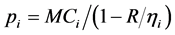 The Equation shows that the price of each type of product (user) on the marginal cost of an addition