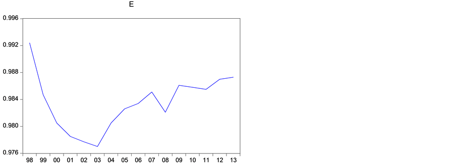 (2) From 1998 to 2003, “E” had been in decline and the possible reason was at the beginning of the market-oriented operation, the institution related with the real estate was imperfect and economic actors had not adapt to the market, so that all kinds of market trading friction led to a decline in market efficiency.