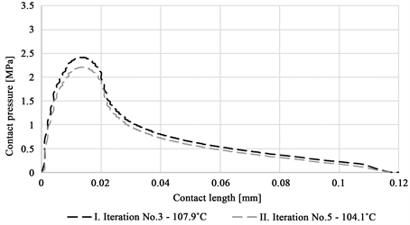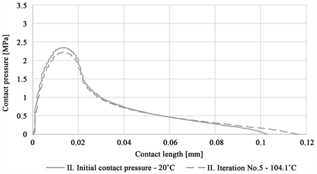 Figure 14. Comparison of the contact pressure distribution for the two types of converged iteration.
