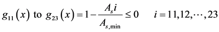 The constraints may be based on stability, bending moment and shear force capacities, and some of the other measures. Thus, the problem can be defined mathematically as a constrained function minimization task, which may be solved by a mathematical programming method [1] .
