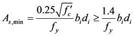 The reinforcement area for bending moment at any section where tensile reinforcement is required should not be less than (