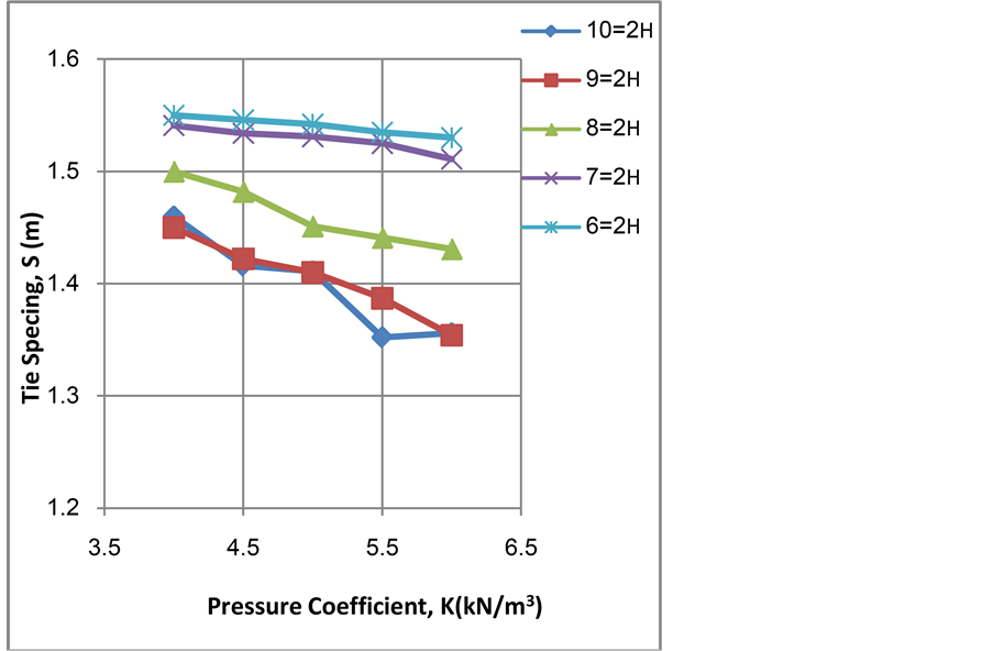 Based on the used pressure coefficient values (4 to 6) kN/m3 and the wall total height (6 to 10) m, the developed program is utilized to find the values or ranges of some parameters relating to tied back retaining wall which give an optimum of such retaining structures. Tables 3-8 show some the results of this study.