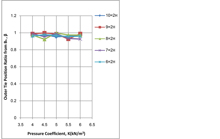 3) The outer tie position ratio, α, is from (0.56 to 0.781) times H1 and the outer tie position ratio, β, seems to be constant, about (0.92 to 1) times Bh.