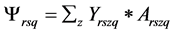 E2: Total biomass produced during every quarter (Ψrq) is computed by multiplying the acreage harvested (Arszq, Argztq) with yield (Yrszq, Yrgtq); Ψrhq refers to the amount of chips h delivered from harvest shed r during quarter q