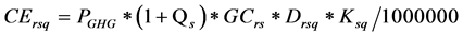 The environmental GHG emissions for each feedstock are calculated based on the FEAT model [21] . The GHG emissions associated with the production (fertilizers, herbicide, and insecticides use; on farm fuel use) and transportation of cellulosic biomass are included. The amount of emissions is multiplied by an estimated price for GHG (PGHG) to calculate the total emissions costs (CE) for each feedstock. The emissions costs are also endogenously determined since they vary with the biomass feedstock mix chosen.