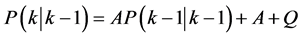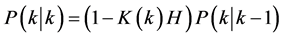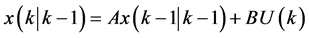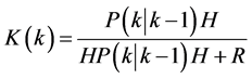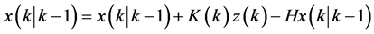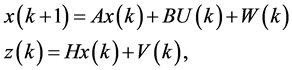 where x(k) is system state vector, A and B are state transition matrix, z(k) is measurement vector, H is output matrix, W(k) is system error and V(k) is measurement error.