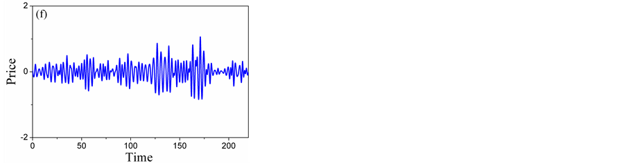 Figure 5 illustrates the three-level decomposition using D-Meyer. We can see from Figure 5(a), Figure 5(b) that the detailed scale mainly contains the trend component, Figure 5(c), Figure 5(d) represent most of the weekly periodic components and stochastic components. Figure 5(e), Figure 5(f) represent most of the strongly periodic components and stochastic components. So, A5 and D5 are low-frequency layers, D4 and D3 are intermediate-frequency layers, D2 and D1 high-frequency layers. Time series forecasting can be produced by forecasting on low-frequency, intermediate- frequency and high-frequency signal layers separately.