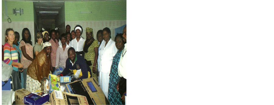 Plate 1. Socio-economic development contributions of Nigeria LNG limited to host communities. (a) The old primary school building for lighthouse community (field work); (b) The new primary school building being constructed by NLNG residential area women association for lighthouse community (fieldwork); (c) Nigeria LNG residential area ladies making donations of plasma televisions and other vital medical items to the bonny general hospital, bonny town [18] ; (d) A section of almost all female students receiving catering instructions from a trainer at the bonny vocational training school [18] .