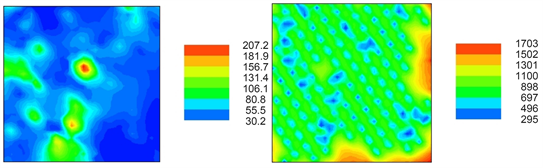 ・ With Model 1 (Figure 11-left), the observations are considered precise and accurate, although sudden jumps at the variogram origin may emerge. This means forcing the nugget-effect to zero at zero lag distance: Variogram (0) = 0; Variogram (h) = Spherical/Exponential/Gaussian model, if 0 < h ≤ range; Variogram (h) = sill = C0(nugget-effect) + C1(partial sill), if h > range.