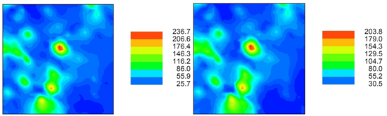 Based on ten realizations generated by myGeoffice©, Figure 25 (top-left, top-right and bottom) shows the E-Type (average) estimate and the minimum and maximum extreme behavior of this spatial Pb contamination case, respectively.