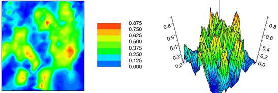 It consists in the generation of N data sets of simulated values. Each realization holds the same statistical features such as the mean, variance, histogram and covariance of the original observations. As well, simulated values honor the measured data values at their locations. Based on N reproductions of any spatial phenomenon, it is feasible to compute uncertainty and the extreme spatial behavior of that particular phenomenon. For instance, from a set of maps, it is possible to assess all sub-regions that overcome a certain threshold and their probability. But, even more important, it is possible to generate a set of realizations (Figure 24), yielding the smallest (best scenario) and the largest (worst scenario) of contamination costs (if that is the study case).
