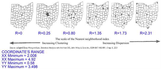 The main goal of point pattern analysis is to determine if there are points that may reveal a clustered (concentration of points) and uniform (every point is as
