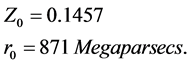 where Zo and ro, are the relativistic redshift and the distance, respectively, of the measure unit; as long as, Z1 and r1 are the relativistic red shift and the distance of the other quasar. Thus, to calculate extragalactic distances, only one need the Equation (9) to obtain the relativistic red shifts from the red shifts measured directly from the respective spectra, and then, the following relationship can be used