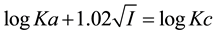 Figure 1. The effect of ionic strength on the values of acid dissociation constant (Kc) of benzoic acid in water at 25˚C.