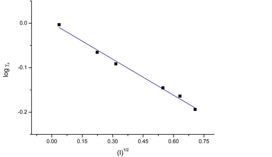 slope equal to −0.2698. The value of mean activity coefficient for any concentration of sodium chloride in the range used can be estimated from this plot.