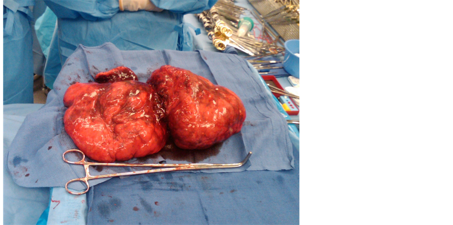 Figure 2. Gross pathology of right pneumonectomy specimen with lung volume size 2 - 3 times normal.