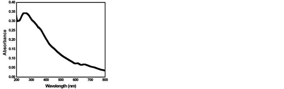 Figure 1(a) shows the UV-visible spectra of very dilute GO dispersions in water, it is seen that GO does not absorb visible light, indicating it is not playing any role at the light absorption stage. But the composite particle absorbs at 635 nm (Figure 1(b)) owing to the excitation of electrons from valence band of Cu2O to its conductance band (band gap energy of Cu2O is around 2.0 eV). This value is close to the reported value [11] of rGO- Cu2O particles indicating copper is present as Cu(I).