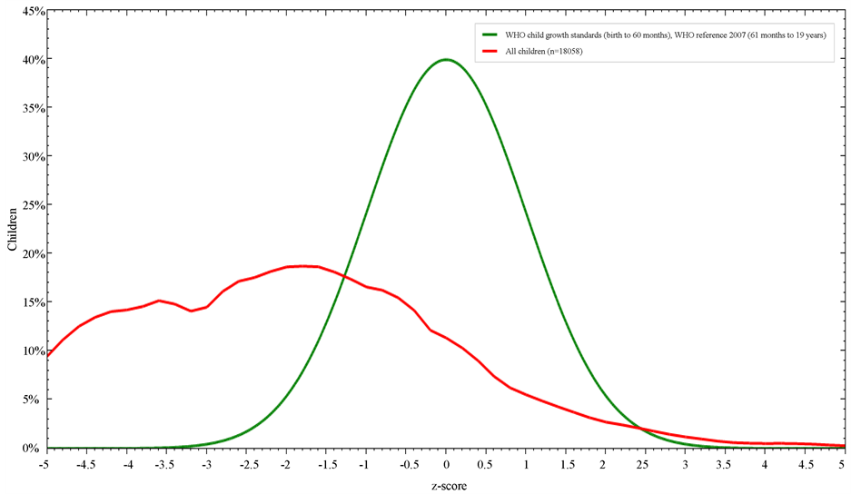 Figure 2. Height-for-age z-score in comparison to WHO child growth standards.
