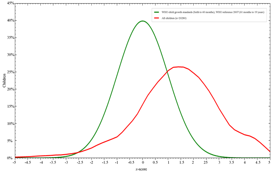Figure 3. BMI-for-age z-score in comparison to WHO child growth standards.