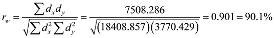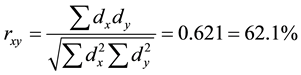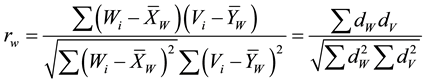Spearman’s rank correlation provides a distribution free test of independence between two variables. Let R(x) and R(y) denote the ranks of a pair of variables (X and Y). In this case, Spearman-Rank correlation coefficient is calculated as