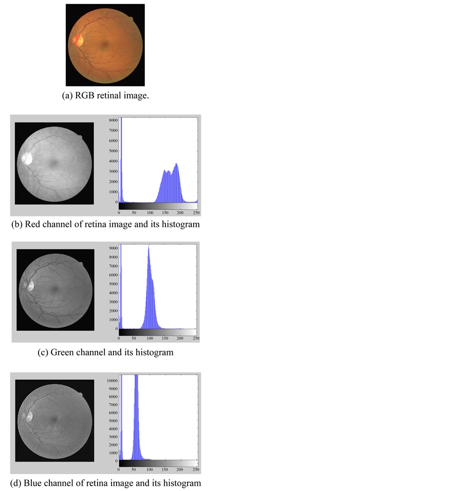 1) Read the input image I. (See Figure 3). In this steps the green channel is selected where this channel produces the superior contrast among vessels in retina image and different features, and the retina itself.