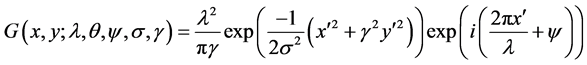 The recurrence and representations of direction in Gabor wavelets (candidate/filters) are identical to those of the persons optical system and they have been establish to be especially suitable for texture representation and recognition [27] . Gabor filters have been to a large degree utilized in applications of pattern analyses [27] -[29] . The most significant characteristic of Gabor filters is their stability to lightness, revolution, translation and scale. Moreover, they can fight photometric sensations, such as image noise and changes of illumination. In the zone of spatial, a 2-D Gabor filter is a function of Gaussian kernel modified by a wave of complex sinusoidal plane, given by