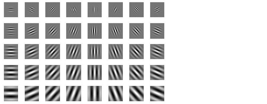 Figure 6. Eight orientations and five scales using Gabor wavelets.
