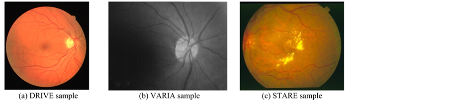 There is database a commonly obtainable namely DRIVE acronym for “Digital Retinal Images for Vessel Extraction”. It contains of 40 color photographs of eye fundus. The photographs were acquired from the population of diabetic retinopathy screening consists of 453 categories among 31 and 86 years of age in the Netherlands. Each image has been common practice JPEG compressed format. The second database of retinal images database were used, namely VARIA database. It is a collection of retinal images applied for authentication objectives. The VARIA database contains 233 images, taken from 139 different person. The images have been captured with a TopCon non-mydriatic camera NW-100 sample and are optic disc centered with a resolution of 768 × 584 [31] .