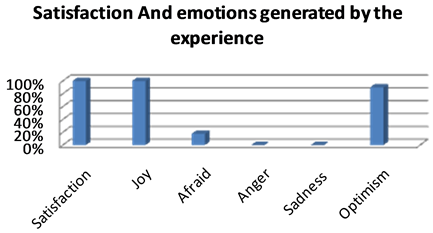 As shown in the Figure 4, the experience was at the origin of the satisfaction, of the joy and optimism in more than 90% of cases.