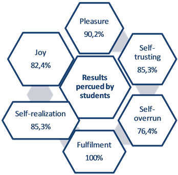 ・ The results of the experience in terms of self-realization, vitality, exceeding the self, self-confidence.
