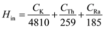 where CRa, CTh and CK are the radioactivity concentration of U238 Th232 and K40.