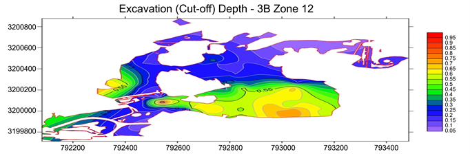 Figure 14. Contamination depth in zone 12 on surfer software.