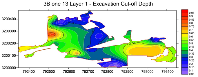 Figure 15. Contamination depth in zone 13 layer 1 on surfer software.