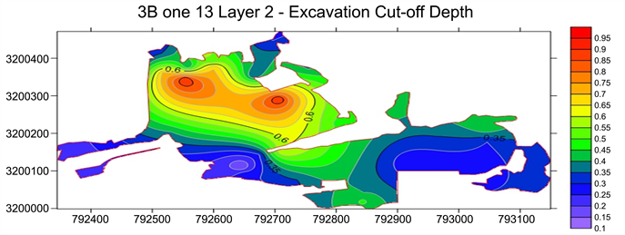 Figure 16. Contamination depth in zone 13 layer 2 on surfer software.