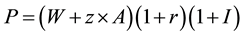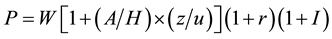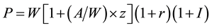The cost C = W + B, where: W―labor costs, and B―remaining costs determined by technology and the management process. Subsequently B/A = z, so B = z × A, where z is the asset turnover according to cost B. Thus, we can write the following formula: