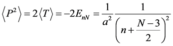 which saturates (equality is achieved) for nodeless harmonic oscillator wave function (ground state). Our results in Equation’s (14) and (15) are the same as those obtained by means of the Fisher’s information entropies [32] [33] , by Stamp’s principle [51] and by Shannon’s entropy [26] . Our method is more straight forward and simpler. The lower bound in Equation (15) reduces to the three-dimensional one, namely 9/4. Furthermore, our result in Equation (14) shows that the lower bound of the uncertainty product (for the ground state) in N-dimension is the