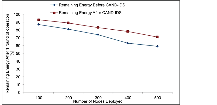 Figure 4. Remaining energy comparison before and after CAND-IDS.